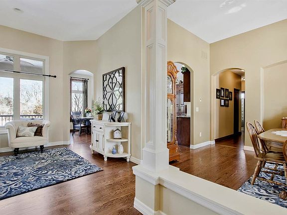 Stop Looking! It's here...Solid, custom built home with ALL the extra's!! located on a beautiful wooded lot with access to the Prairie Sunset Trail walking path and NO SPECIALS! This house sits in a quiet area where you can relax and enjoy life after a hard days work, away from it all! Welcome home to this gorgeous 3000+ square foot, 4 bedroom/3 bath, walk out basement home. You are welcomed by a large front porch with gorgeous stone, where you can sit with coffee in the morning or a glass of wine in the evening! You'll enjoy the fireplace in the hearth room and instantly love all the larger windows that offer much natural light and reminds you that you are away from it all. The kitchen is open and spacious with granite countertops, a large island, eating space and a BIG walk-in pantry. The kitchen also has an exterior door to a large, maintenance free deck. The formal dinning/family room offers extra space for large family gatherings and entertaining. Upstairs the Mater Bedroom has vaulted ceilings, his/her sinks, a soaker tub, an exterior door to the deck, storage, a HUGE walk-in closet and you guessed it, more fantastic windows! That's not all! the finished basement offers a large family/game room, spacious wet bar with eating space, 2 additional bedrooms, with tons and tons of storage! Just when you thought you've seen it all, take a tour outback!!! a built in stone firepit with lights and outdoor plug-ins:) There is also a hidden storage unit under the deck with access for a backup generator and the sprinkler system extends to the tree row. This house won't last long so bring your picky buyers!!!