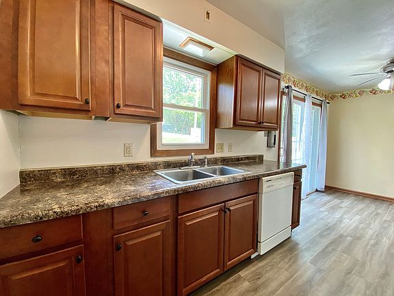 Nice 2 bedroom, 2 bath ranch home, kitchen, dining with patio doors leading to a large deck & nice sized living room. Finished family room in lower level. Single stall attached garage. Only $120,000