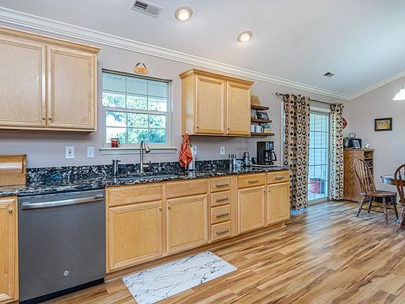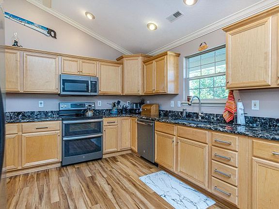 Awesome 3 bed, 2 bath split bedroom home in Eagle Lakes subdivision. Inside features include vaulted ceilings, quartz counter tops, newer black stainless steel double oven, microwave and dishwasher. Plank flooring installed in 2018, Very large master bedroom with walk in clloset, step in shower and free standing jetted tub. New roof in 2022. Fenced back yard and covered porch. Really need to see it to appreciate this house.