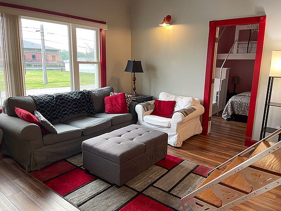 Must see this adorable remodel. Open concept living room and kitchen/loft, great modern staircase, that is movable. Lots of built-ins, High ceilings. Kitchen offers all appliances, built-in eat in area, center island/bar. 2 bedrooms, 1 bath, large, standing shower, private stool closet. Primary Bedroom with open closet/wall unit. 2nd bedroom built-in loft/bed, and shelves. Super cute. Basement has so much storage space, clean and bright. So many updates throughout. Small outbuilding, offers electric, heating, storage, pull downstairs, could be used for an office space, man cave, she shed, hobby room, so much more.