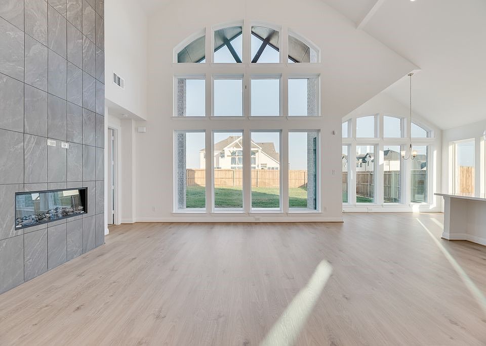 Introducing a stunning new Grand Home in the desirable Park Trails community, ideally located across from Opportunity Central. This beautifully designed Modern Farmhouse Grand Riverside floor plan is the same floor plan as the model home and showcases exceptional attention to detail. The home features a dramatic vaulted family room with a striking two-story modern fireplace and pre-wired flat screen TV outlet. Rich wood flooring extends through the entry, family room, home office, kitchen, and dining area, creating a warm and elegant flow. The gourmet kitchen is a chef’s dream, featuring Shaker-style cabinetry, Omegastone slab countertops, a five-burner gas cooktop with a sleek stainless steel & glass vent hood, built-in stainless appliances, pendant-lit island, walk-in pantry, and a custom trash drawer. A full oak staircase with contemporary wrought iron balusters adds a sophisticated touch. The first floor includes a media room perfect for entertaining, along with a flexible space ideal as a guest suite or private office. Thoughtful upgrades include double front entry doors, eight-foot interior doors on the main level, extensive moldings, rocker switches, and decorative lighting throughout. The primary bath offers a luxurious retreat with a freestanding soaking tub, large walk-in shower, and modern rectangular sinks. Upstairs, a spacious game room provides an ideal area for kids or recreation. A covered back patio offers outdoor living space for relaxation or entertaining. This Energy Star certified home features R38 insulation, a radiant barrier roof, and energy-efficient vinyl windows. Residents enjoy access to a community pool and scenic walking trails, with all local schools within walking or biking distance. This is luxury living with convenience and style in one of the area's most sought-after neighborhoods.
