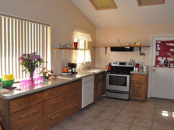 Very Nice Home! Needs some TLC and Cosmetics repairs, an opportunity to make it your own. Wonderful and spacious home with Lots of great potential. Fenced area for RV or Boat. Enjoy large yard with 1 covered Patio in front facing North and 2 covered Patios in back yard facing South with Great View of Mountains. No HOA's. 3 walk in closets. Costume Oak cabinets, built in entertainment center, and office desk. SHORT SALE SOLD AS IS.