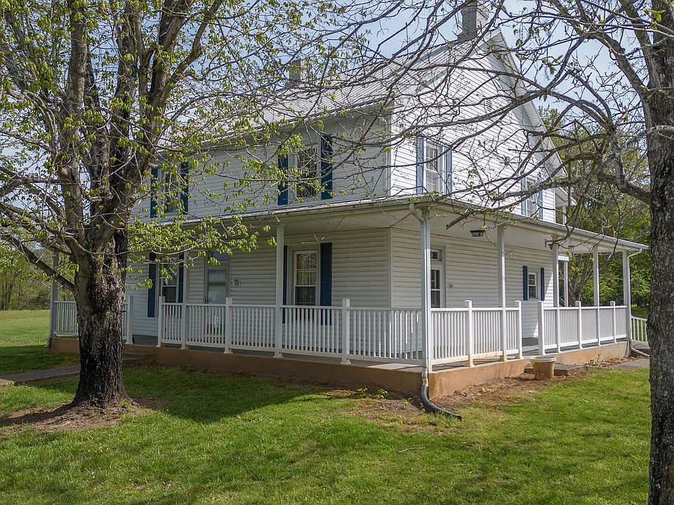 Hurry to see this Lovely Farmhouse with Welcoming Wrap-around concrete Porch, and upper back porch with bedroom access. Thoroughly renovated in the late 1990's it is in Excellent Condition, has updated electrical, closet lights, replacement windows, metal roof; fully repainted 2 yrs ago inside. Located midway between Daleville & Covington areas, It's in walking distance to the James River/Gala Boat Ramp & Kelley's Store. With 2+ acres of pasture, 3 tax parcels, an oversized 2-car garage plumbed with Natural gas, the home features a large eat-in kitchen, modern cabinetry, living room & foyer, laundry/office & full bath on entry level, 4 bedrooms & 2 baths up; hardwood floors under carpets; Wired for Generator. Easement crosses property.
