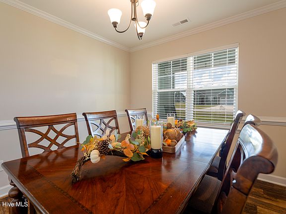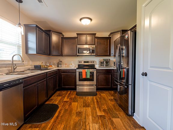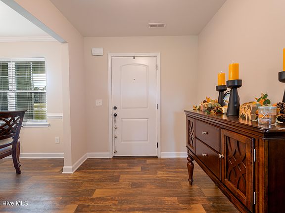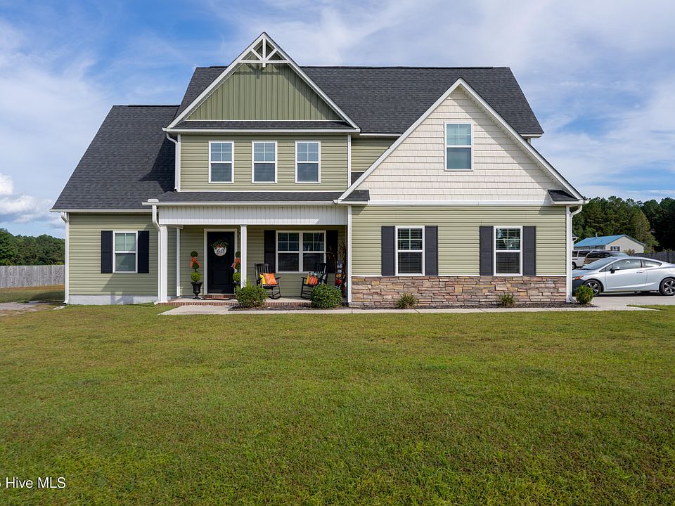 Welcome to this well-maintained 3-bedroom, 2.5-bath home with a bonus room and 2 car-attached side entry garage, it offers modern style, with the perfect blend of comfort, convenience, and functionality. Enjoy the comfort of the spacious seating on the front porch. Step inside and just off the foyer you are greeted by a bright, formal dining room perfect for gatherings. The open-concept floor plan features a spacious living area, eat in area off the kitchen with ample countertop space, cabinets, stainless steel appliances, and convenient pantry. The primary suite is located on the main floor and includes a large walk-in closet and a private bath with dual vanities, a water closet, a soaker tub, and a walk-in shower. Upstairs, you'll find two additional bedrooms, a full bath, and a versatile bonus room that can be used as an office, playroom, or guest area. Additional highlights include a side entry two-car garage with extra storage, a laundry closet on the first floor, and a powder room. The property sits on a spacious corner lot. The backyard offers space for outdoor enjoyment. Located just minutes from Camp Lejeune, MCAS New River, schools, shopping, dining, and local beaches. This home combines convenience, comfort, and modern design in one inviting package. Don't miss the opportunity to make this move-in-ready home yours! For information about our preferred lender and the incentives you may qualify for, please ask your agent to review the agent comments for additional details.