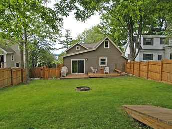 Greetings from Petoskey Grove, a 3-star rated vacation rental in the heart of Petoskey, Michigan that rents for $1550 per week plus taxes and fees. This freshly remodeled home is the perfect vacation retreat for a family of up to 7. The open kitchen with stainless steel appliances allows your group to prepare your favorite meals to enjoy together around the dining room table. Distant views of Little Traverse Bay can be seen throughout the seasons. Petoskey Grove has a main floor queen-sized master bedroom with a flat screen TV. Upstairs you will find a bedroom with a queen sized bed, a bedroom with three twins, and a bonus sleeping area adjacent to the twins bedroom that has a queen sized mattress. The steps leading upstairs are steep - please use caution. Spend your evenings in the fenced-in back yard hosting a summer BBQ on the large deck. Or sit back on the large sectional sofa in the living room and watch a movie. The porch swing on the front porch is a great place to relax with a good book. Other great features include air conditioning, wireless internet, wood floors throughout, brand new front load washer and dryer, and a cozy living room and sitting room perfect for conversing after an eventful day. Located near the corner of Grove and Waukazoo, this home is just a few blocks from the famous Gaslight District shopping area in Downtown Petoskey where unique shops and great dining await. Or take a walk down to the Bayfront Park where you will find the local marina, playground, baseball fields, and access to the Little Traverse Wheel Way bike and walking path. For a change of pace, take a day trip to nearby Harbor Springs, Bay Harbor, Boyne City, Charlevoix, Mackinaw City, Mackinac Island, or the Upper Peninsula. Downhill ski slopes may also be found nearby in Harbor Springs at Boyne Highlands and Nub’s Nob or in Boyne City at Boyne Mountain. For more information about Petoskey Grove visit our website at http://www.holidayvacationrental.com/surrounding-area-rentals/petoskey-grove/