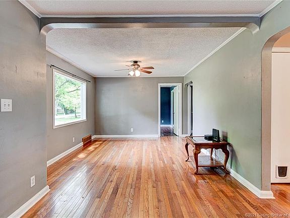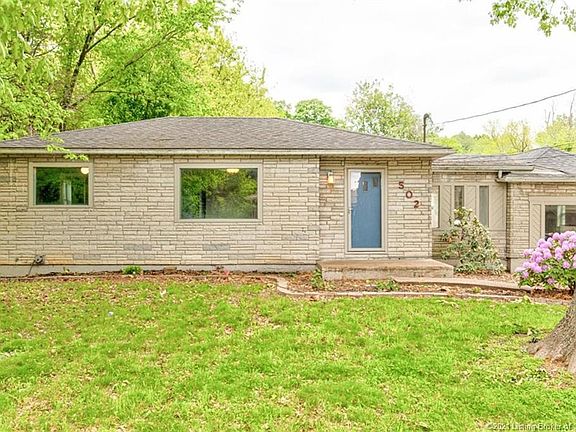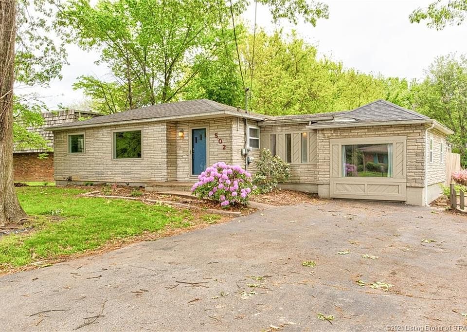 You have to check out this unique Bedford Stone Ranch home located close to everything on Lewis and Clark Parkway in Clarksville. This home offers a really unique floor plan with 3 Bedrooms and 1 bathroom, a large living room and dining room and a kitchen space made for entertaining. The basement offers a finished space that would make a great family room or entertaining space. The large backyard is fenced in and has just the right fire pit space to enjoy summer nights. The garage offers massive space, and can hold up to 3 cars as well as additional work space. Please note that all measurements are approximate. If critical, buyer should verify.