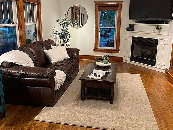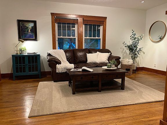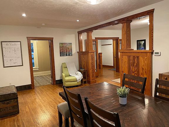 This property is chock full of wonderful features, including mostly hardwood floors, beautiful woodwork and staircase, a roomy, modern kitchen with granite countertops, back splash, a pantry and newer stainless steel appliances included, formal dining room, living room with a gas fireplace and two rooms that could be used as small bedrooms but are currently used as a play room and an art room and a nice bathroom with linen storage. There are 3 spacious bedrooms upstairs with plenty of closet/storage space and a big bathroom with laundry and linen storage inside. There is a small mudroom when you enter the back door that has great storage. The covered front porch is perfect for lazy afternoons and the covered patio off the garage is ideal for entertaining and is big enough for a hot tub. The unfinished basement is perfect for storage and remained nice and dry even during the flood year. The house is not in the flood plain. There are also washer/dryer hookups in the art room if you decide you would rather have main floor laundry. The newer water softener stays. The house has been rewired-no old wiring remains. The garage was built in 2017 and includes 3 garage doors with openers/remotes and an extra room that can be a workshop, man-cave, she-shed or just more storage. The garden box stays.