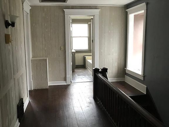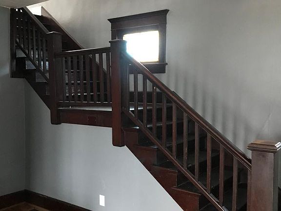 This large 4 bedroom home is perfect for a large family.The kitchen has painted grey cupboards with stove and refrigerator. The laundry is adjacent to the kitchen. The mainfloor has a spacious living room and dining room with original hardwood floors and a half bath. The upstairs has a full bath and 4 bedrooms. The exterior has been painted recently and the roof is new along with new plumbing and a new gas forced air furnace. A 2 car detached garage is also included. This home is priced to sell. It is great for a first time home buyer or for income property. Call an agent today to view this large home on a corner lot.