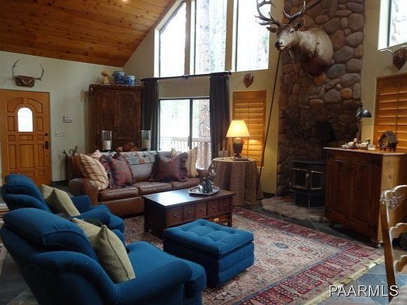 Amazing Cabin Get-Away in the Cool Pines, 2 Acres Backing National Forest; 3BD/2.5BA Featuring the Finest Finishes; Including Slate Floors, Slab Granite Counter Tops, Stainless Steel Appliances. Custom Lighting. Don't Miss the Butlers Pantry w/ Additional Cabinets & An Additional Wall Oven. Master Suite Occupies the Second Floor & Features Separate Tub & Shower, Walk In Closet. Awesome Gazebo W/Wood Buring Fireplace & Turbo 3 Burner Grill Creates Wonderful Outdoor Living Space.