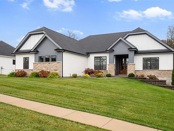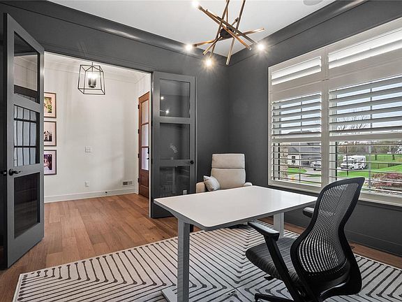 Stunning FORREST HOMES former display. Open concept ranch loaded with incredible upgrades/amenities. Double 8' Mahogany glass doors, 10' ceilings, quality finishes, engineered wood flooring. Off the entry is a fabulous office. The spacious great rm has a wall of windows overlooking the back yard, a stone gas fireplace flanked w/beautiful floating cabinets. Enjoy cooking/entertaining in the luxury kitchen with oversized island, quartz countertops, custom range hood, range w/gas cooktop + additional wall oven and built-in microwave, walk-in pantry, tile backsplash+. Dining area has tray ceiling with 8' slider leading to beautiful covered screened deck. Primary suite w/plantation shutters, luxury bath with tile floor, double bowl vanity, free-standing tub, large shower + huge closet. Opposite wing has 2 bedrooms, a full bath, and large laundry rm w/built-in cubbies. Amazing lower level w/10' ceilings, family rm, bedroom, full bath, awesome bar w/wine fridge! Covered patio, 3 car garage ++