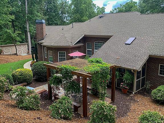 Beautiful single level all brick home with attached and detached 2 car garages. Detached two story garage with workshop and simple storage on second level. Beautiful hardwood floors and tile throughout the entire home. Abundant windows throughout home for natural light, concrete patio with stone walkway to a pergola and fire pit for entertaining and enjoying the quiet night outdoors. Home boasts high ceilings in family room, kitchen, den, dinning room, and master bedroom. Master bedroom has private access to a screened in porch, two walk in closets and spa tub. Two other bedrooms share a Jack and Jill bathroom and large closets. Bonus room above the garage has a full bathroom and tile floor. Kitchen with custom maple cabinets, large bar area and is open to hearth room, breakfast nook and dinning room. Manicured yard and landscape gives home great curb appeal. Sprinkler system in front and back yard. Crawlspace was encapsulated in 2019 and has a commercial dehumidifier. Property also features two out buildings for lawn equipment and fire wood storage. Home has a lake view in the fall, winter and early spring. One owner house. Will honor buyer’s agent 3% commission. Please call or text 864-913-3002 for information.