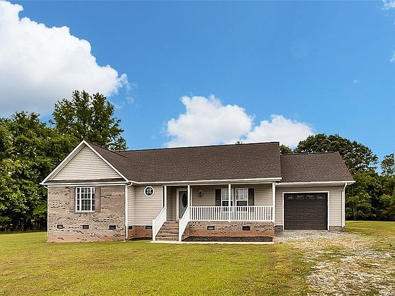 Meticulously maintained home in the cul-de-sac on over an acre lot! This 3 bedroom home features vaulted ceilings, a spacious living room, eat in kitchen and dining combo, built in desk and computer space, walk in closets, a relaxing garden tub and so much more. An inviting color palette with the new paint throughout, new carpet, new vinyl plank flooring, new faucets and so much more make this home so appealing. Expand your living space as you enjoy evenings relaxing on the back deck overlooking the private back yard and morning coffee from the covered front porch. The level lot makes lawn maintenance a breeze and there is even enough space for gardening. The attached garage also has space for storing all your tools and garden equipment. Conveniently located in the heart of the state within close proximity to Toyota Battery and Wolfspeed this home offers the best of employment opportunities and the comforts of small town rural living.