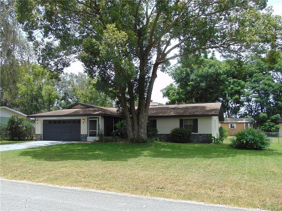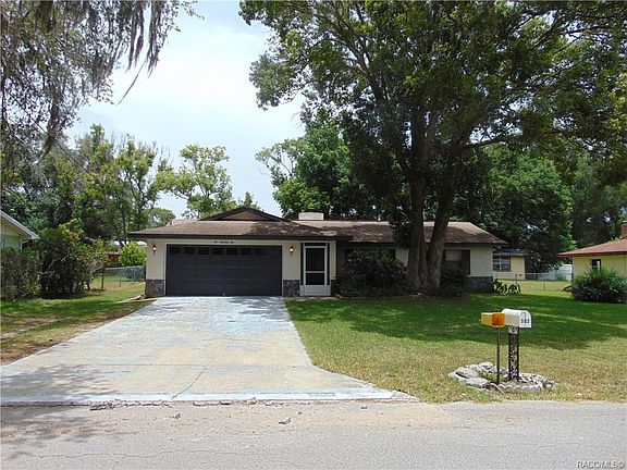 Beautifully & well maintained Home!! Split floor plan, 2/2 with back porch. Comes with Home warranty for one Year. Has large Living /Dining room a wide open feel. Home has fresh interior paint & flooring, 2007 roof replacement. Location is close to banking, shopping, medical and recreation in a quaint, small neighborhood of similar homes in Inverness. Perfect for full time living, bike friendly, Florida small city. Screened entry porch opens to large open family room. Kitchen has large breakfast bar, dinette area and nice working layout. The Master has walk in closet, nice bath with shower stall. The bath which has a tub shower combo. Washer and dryer hook up in the garage.