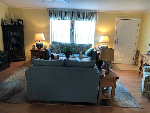 Hollywood Estates 55+ Community with clubhouse, shuffleboard and pool. You own the land. Close to churches, shopping, golf and beaches. Built in 2002. Handicap, Ramp. 3 bedrooms, 2 baths, 2 car carport is 25x24, hurricane shutters, inside laundry plus septate storage unit. Eat in kitchen. New roof being installed 2/24. Furnishings are negotiable.
