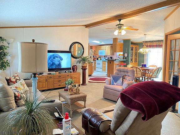 Lovely 3 BR 2 BA doublewide in 55+ independence Ct. Situated by a little stream and surrounded by trees sits this spacious and well kept home. It boasts a large open floor plan, with a kitchen filled with cabinets and counter space. Master has it's own bathroom with soaking tub and WIC. 2 other bedrooms are nicely sized and there is also a 2nd full bath. Extra room for an office or den with French doors, dining room with sliding doors to your very private deck, and laundry area too! Lot rent includes trash and snow removal. 3 yr old roof, 2 yr old HW tank.