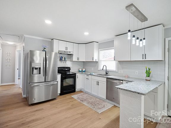 You won't believe this renovation! Beautifully done, this lovely home will make a great starter home or downsize to one level! All new vinyl flooring throughout, New kitchen - cabinets, counters, lighting. Stainless Appliances. New bathroom - vanity, toilet, lighting, heated towel warmer., New paint throughout. New HVAC. This great layout is designed for a separate living room OR it can be a separate bedroom/living space with its own entry. The dining room is open to the kitchen and is large enough to be the family room. Flexibility! Large fenced backyard. Best of all - award winning Clover schools! Walk to everything, grocery, restaurants, shops - just a few blocks from this home. No HOA. This home is located in USDA eligibility area.