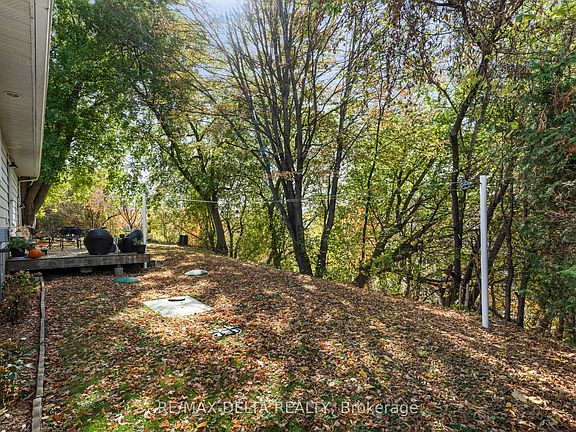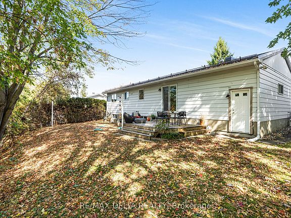 This beautifully updated four-bedroom bungalow blends comfort, functionality, and charm. Step inside to a bright, open-concept main level featuring hardwood and tile flooring, a cozy natural gas fireplace, and a renovated kitchen with modern two-tone cabinetry, a center island, and a stylish backsplash. The dining area opens to the backyard, creating the perfect space for family meals and entertaining. The fully finished basement offers exceptional versatility with a spacious family room, a second full bathroom, a laundry area, and a dedicated office nook. Enjoy the outdoors in your private, tree-lined backyard, ideal for relaxing or hosting friends. This home features municipal water, an Ecoflow septic system (sewer connection at street level for futur connection), natural gas heating, central air conditioning, and an oversized single garage with inside access. The metal roof adds durability and peace of mind for years to come. A perfect blend of modern comfort and cozy charm, move-in ready and waiting for its next family to call it home.