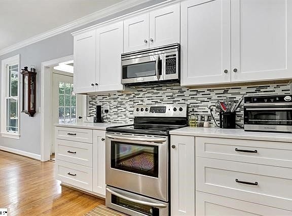 Gorgeous home in Harper’s Ridge subdivision with views of Lake Hartwell!! This traditional ranch home with an in-ground pool and 3 car garage has been meticulously well kept and is perfect for your next home! Notice the thoughtful landscaping and beautiful mature trees surrounding the property for added privacy. As you step into the home, you are greeted by the classic foyer and open ranch floorplan to the left is the formal living room also connected to the formal dining room perfect for entertaining guests! It has detailed chair rail molding, modern chandelier, and hardwood floors throughout the home. To the right of the entry is the Primary and 2 of the guest bedrooms with walk in closets. Head into the main living area and notice the traditional Masonry fireplace, and lots of space for family and friends to gather. This leads into the brand-new kitchen that boats new lighting, stainless appliances, Quartz countertops, Custom cabinets, and generous breakfast area. Notice the fresh paint throughout the home and new Pella windows bringing in all the natural light as you look out at the in-ground pool out in the backyard. Additionally, there is an office which could be used as a 4th bedroom. Let’s check out the backyard! Off the back of the home there is a generous sized pool deck with your stunning blue in-ground pool, the pool area is completely fenced for safety and a HUGE private backyard!!This home sits on over an acre lot, so there is plenty of space to do all the outdoor activities you could imagine. This is truly a gem in Anderson, so you do not want to miss your chance to see this home. Call us TODAY -this could be your dream home!!