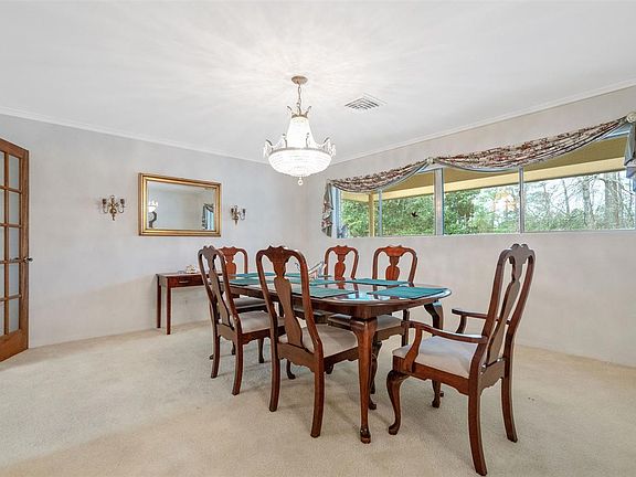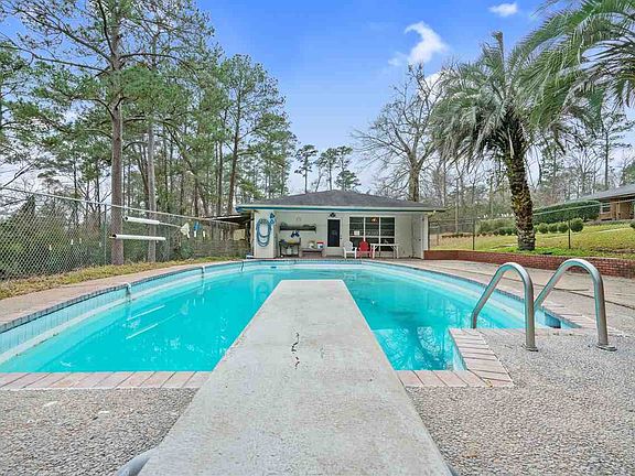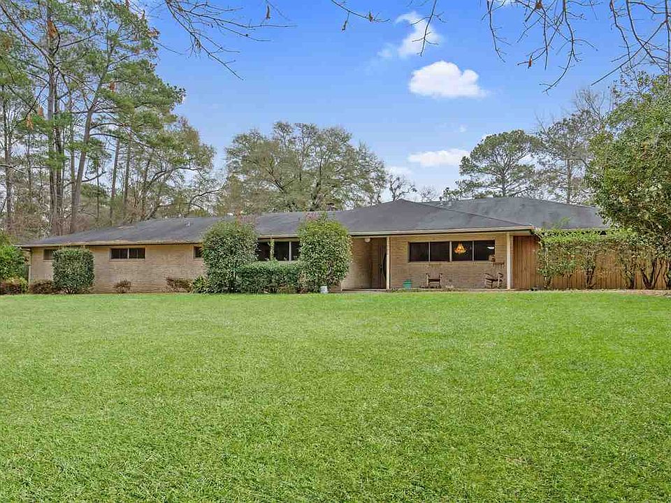 Looking for a large home? This 5 bedroom 4 1/2 bath fits the bill. It sits on 2 acres +/- in town. The home features large rooms throughout. There is a formal dining and formal living area, den with a white brick fireplace, kitchen with ample cabinets. Two of the bedrooms share a bathroom, but the other bedrooms have a private bathroom. Each bedroom has a large amount of closet space. In the entire house you will find built-ins. The primary bedroom has a bathroom with a side for him and a side for her. It also has an outside door that steps out into your very own private flower garden. Peer out the back windows at the beautiful landscape or step outside and enjoy the in-ground swimming pool and pool house with an extra bathroom, entertaining space and an attached garage. This lovely home has so much to offer. Make your appointment today to view this gem!