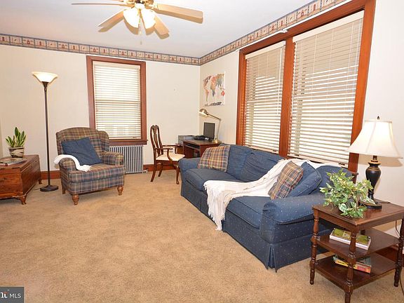 All Brick two-story home located on an Americana Main Street, walking distance to Post Office, Grocery Store, and Roland Park! Hardwood floors throughout; 3 Bedrooms all with Ceiling fans and closets including one walk-in and stairs to Attic. Spacious living room off Foyer, dining room with coat closet, kitchen and half bath with door to backyard complete the 1st floor. Full bath on 2nd floor is updated with new vinyl window, tub/shower, double vanity, and linen closet. New Hot water heater in 2020. Laundry w/Utility sink in basement, outside entrance to basement, radon system in place. Detached 2 car garage, one side with concreted 5 ft deep automotive service pit. Custom Levolor blinds included. Easy walk to the Ephrata to Warwick Rail Trail!