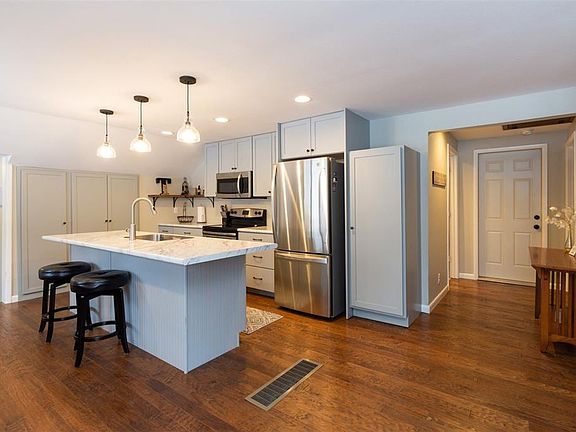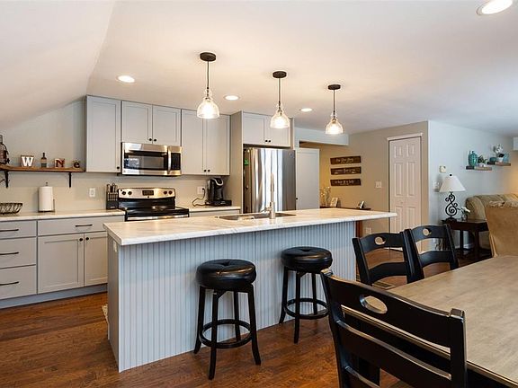 Unique and updated home on a nearly half-acre lot! Updates include kitchen, electrical, flooring, bathrooms, roof, siding and water heater. The open feeling of the kitchen and living room is perfect for entertainers. The 2-stall garage is attached and very spacious. You will also find so many uses for the additional attached building, for a shop, storage or room for more toys. First-floor laundry, large sun porch, all appliances stay, quick possession available.