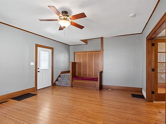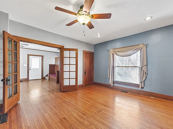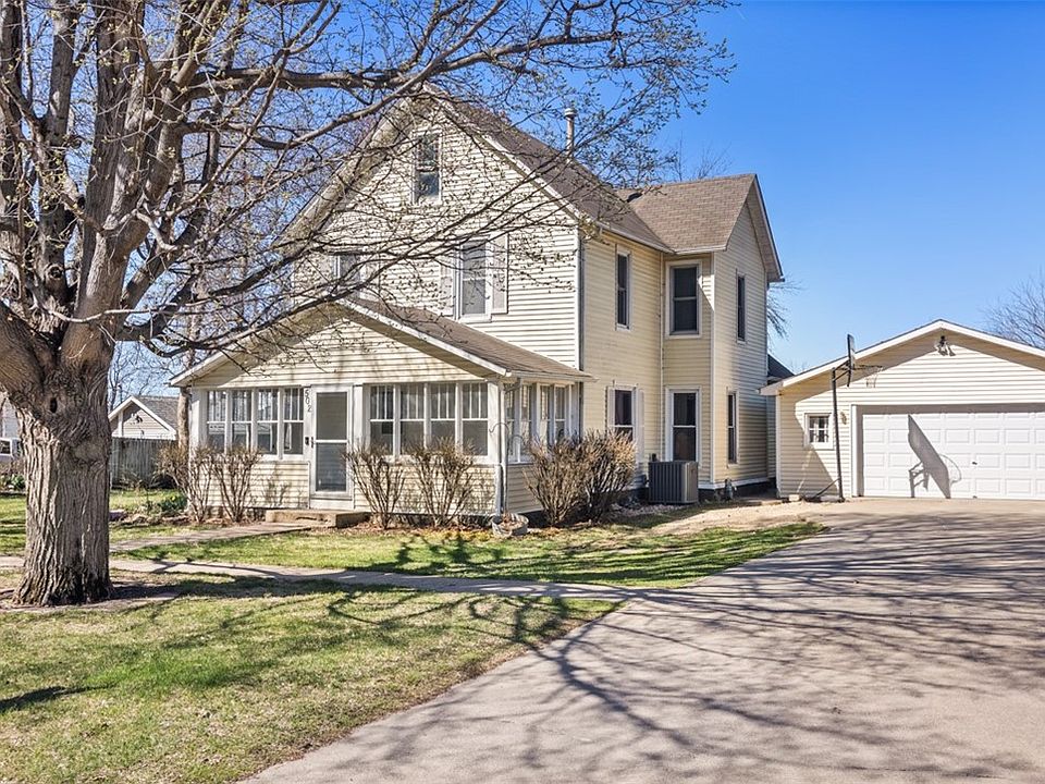 Check out this spacious 2 story home that features an enclosed front porch, wonderful natural woodwork, a built-in bench, updated kitchen with a built-in pantry. There are french doors that divide the living room and formal dining room with nice hardwood floors. The main floor full bath is connected to a bedroom/office, the upstairs has a nicely updated full bath, a large master bedroom, and two additional bedrooms. The covered patio walkouts to a nice back yard that backs to farm ground, there's also a carriage garage behind the 2 car garage for additional storage space. This is a must see!