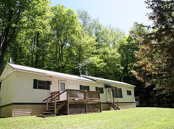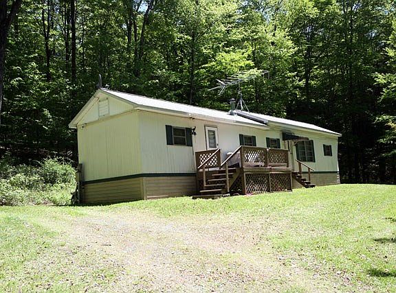 Set on a quiet country road, this mobile home is tucked on 8.81 wooded acres plus an extra office trailer currently used as a workshop/shed. Inexpensive escape only minutes to the Delaware River and Bethel Woods! (being sold in "as is" condition).