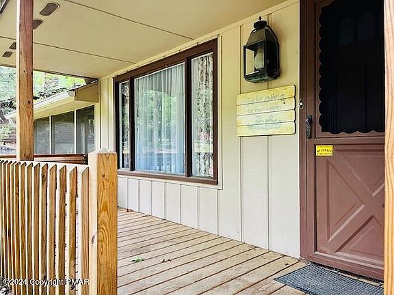 Sellers are very motivated said bring offers Split Rock Resort walking distance to all amenities corner lot attached garage plenty of parking. 4 bedrum 3 full baths galley kit with SS and granite breakfast room with lots of glass to enjoy view sliders to deck primary bedroom changed to large game and family room pool table etc living room dining room combo stone gas fireplace large spiral stair case leads to 2 bedrums and full bath fully furnished turn key screened in porch off living room unfinished basement laundry area with entrance to garage central sewers no HOA fees just road Maintenace fee option to join beach pools etc. in between 2 ski slopes motor boat lake beach pools golf tennis and more good highway access great primary too year round resort area living shows well