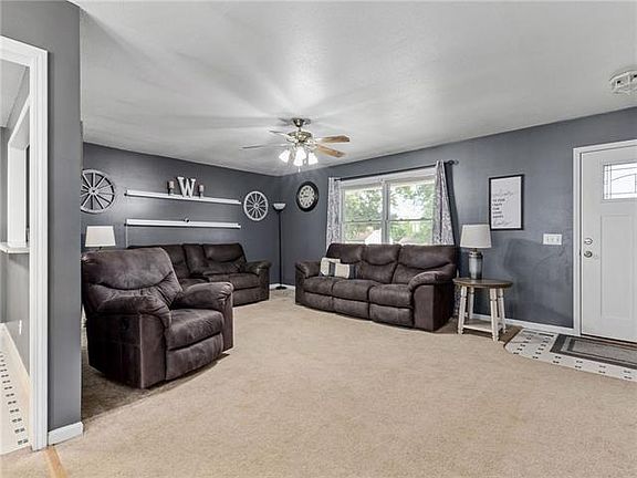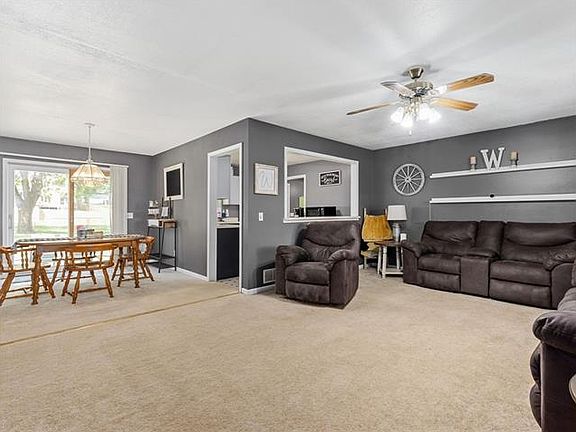 Located on a quiet street this desirable ranch is your gain. The attractive curb appeal, front porch & large stamped driveway give you a great first impression. Spacious living room is open to kitchen & formal dining to provide more usable space & keep you included while entertaining. Timeless white & navy kitchen cabinets add a fresh kitchen update. Bonus room off the kitchen offers an additional multipurpose space. Bedrooms are oversized with closet organizers, 2 with ceiling fans & primary with private full bath. Attached garage has utility sink, built in storage & extended length on one side. Additional detached shop/garage leaves endless opportunity for hobbies, storage or additional living space. One level living, Large fenced in yard, quiet street. So much to love in your new home, Welcome!