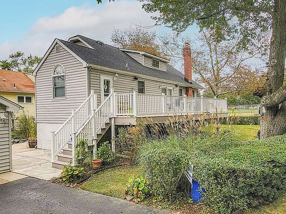 Beautifully maintained and completely updated 4 bedroom 2 + bath house on quiet corner lot of mature neighborhood. A custom kitchen with Cherry cabinets and heated tile floor will keep you warm during cold weather. An open floor plan leads from the kitchen onto Cherry hardwood flooring through the dining room and into the living room. The living room boasts not only the beautiful Cherry flooring but also a gas fire place which, when ignited by a push of a remote control, will add instant warmth and ambiance. Two bedrooms are located on the first floor. The spacious Master is oversized and allows for plenty of furniture as well as a King sized bed. The 1st floor bath is equipped with a recently installed walk in shower with rain shower-head. The second bedroom has custom built-in books shelves and cabinets. Upstairs on the second floor there are two good sized bedrooms as well as a spacious 3 piece bathroom with a shower and large linen closet. The upstairs landing is complete with a closet and window seats with storage below. Due to the size and offset positioning this area is currently used as a small in-home office. A wall mounted natural gas heater assists with heat upstairs. The basement is unfinished and houses a separate laundry room, gas furnace and gas hot water heaters. The deck is constructed of low maintenance plastic composite decking and houses a built in natural gas grill. A concrete patio leads from the house to a beautiful Koi pond and flower gardens. A detached 4 car garage rounds off this spectacular home. Two of the four bays are currently used for vehicles. The other side of the garage is equipped with HEAT, AIR CONDITIONING, CABLE AND WIFI SOUND SYSTEM. This large and spacious side can be utilized as a working garage, a workshop, Man Cave, or an extension of living space as a recreation room. A NEW 30 YEAR DIMENSIONAL ROOF was installed over the entire property, both house and garage, September 2021. ***. NO BROKER PARTICIPATION ON SELLER SIDE ***