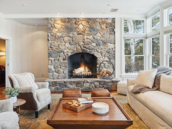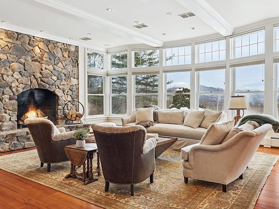 Welcome to Twin Birches, a home envisioned for the enjoyment of family and friends. Perfectly sited with breathtaking mountain views from nearly every room, this residence has tremendous value. Upon entering, you’ll be drawn to the open floor plan highlighted by the spectacular kitchen, a masterpiece designed for those who love to cook and entertain. Featuring an enormous island that serves as the focal point and complemented by three sinks, two ovens, and an enviable pantry. The craftsmanship is topnotch, evident in every detail. Huge windows and high ceilings enhance the sense of space, creating an atmosphere of openness and grandeur. The impressive fieldstone fireplace adds warmth to the main floor and can be enjoyed throughout the open living area. Three generously sized bedrooms can be found on the second floor, each providing its own unique view of the landscape. The large primary suite on the main floor offers a luxurious retreat, seamlessly blending comfort and privacy. The finished basement can be utilized as a game room or additional space for guests. Central air ensures year-round comfort. The large mudroom was designed to accommodate all the gear necessary for your outdoor adventures. Twin Birches offers a large swimming pond, surrounded by mature gardens. Ideally located a short distance from the charming village of Stowe and a quick drive to Stowe Mountain Resort, Twin Birches is an ideal four season retreat with thoughtful details to enhance daily living.
