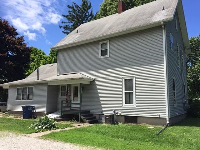Located in the city on 1.29 acres of ground is this sturdy 2 story home with 2 apartments and a 2 car detached garage. Main floor is a spacious 2 bedroom, 1 bath and tenant has been there for over 7 years. Upstairs is just currently vacant and all ready for a new occupant. Main floor tenant pays heat,cooling,electric and upstairs pays electric only. Owner pays water bill. 2 separate hot water heaters (one gas and one electric) upstairs pays the electric for the electric hot water heater and main floor pays for the gas hot water heater. Garage has opener. Spacious corner acreage. Ranges and Refrigerators remain, but not washer and dryer (belong to tenants). Nice dry good sized basement.
