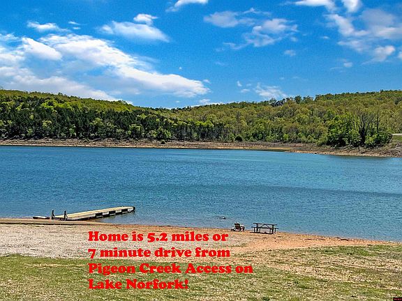 Show place Northpointe All Brick home with vaulted ceilings, large covered deck with 4' chain link fence. 5.2 miles to Pigeon Creek Lake Norfork Access. Home has boat storage behind gate. Auto Generac generator system, storage room with workshop under home, new Heritage II shingles in August of 2022. Jacuzzi tub, front & rear sprinkler and wet weather creek.