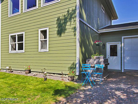 This sunny and delightful 3BR/2.5BA home is full of style and light! The open, reverse, floor plan with kitchen/living/dining upstairs allows natural light to stream in adding extra warmth to your private nest. You will love the spacious kitchen for entertaining, the huge pantry, and the high ceiling. Convenient in-town living on a beautiful forested street close to trails, schools and the museum.Due to the continuous forest in this neighborhood, there is abundant wildlife all year long - cranes love to land and wander on the quiet street, hawks soar around the tree tops, and moose and their calves meander through the yards. The Sellers installed a lovely patio in the back side yard that provides a quiet sun-filled spot to start and end your day. Have your morning tea/coffee here and then unwind at the end of the day as the sun floods in from the west. The home has a surprising amount of storage with a huge pantry directly off the kitchen, ample closets in each bedroom, under-stair storage, a 358 sq ft garage, and a 660 sq ft dry crawlspace. Efficient natural gas heat: Rinnai heater downstairs and cozy Jotul stove upstairs. 5* energy rating. SELLER'S COMMENTS: What We Love about 502 Noview: Light From the bright and airy upstairs to the built-in, motion sensor lights in the pantry and downstairs baths, every space has ample light. Kitchen This is by far the best kitchen of any home we've lived in. With its highly functional layout and plenty of space to work, we've loved cooking delicious meals and hosting friends and family. Efficient Floor Plan This home truly makes good use of every square inch and lives larger than its square footage. The open upstairs has plenty of room where you need it most, and the downstairs rooms are just the right size. Storage That pantry! Plus an easily accessible, dry crawlspace AND a heated garage, our home has so many storage options. Patio We've had so many wonderful, sunny afternoons and evenings on the patio, we are really going to miss this part of our home. Even when the summer breeze is blowing in town, the patio is tucked into the trees so it's almost always calm. Berries We've spent years planting diverse berries in the back yard, and we are excited for others to watch them continue to grow (and enjoy their deliciousness!). There are numerous varieties of strawberries, currants, haskaps, gooseberries, saskatoons and raspberries. Location This is one of the best locations in town! Noview is a very low-traffic street so it's nice and quiet, but we're just a short distance to downtown, the hospital and several schools. It's a ten-minute walk to the playground at Karen Hornaday park or to the beach at the end of Crittenden Dr (by the Ocean Shores Resort). Neighbors From lending us gardening tools as we transformed the landscaping, to towing our car out of a snowbank and bringing us gifts of freshly caught halibut, we've loved being surrounded by folks who are always willing to lend a hand. Trails One of our very favorite things about living here has been walking down to the trails by the Pratt Museum and Homer Middle School. Wildlife Being right in town, we didn't expect to see so much wildlife in the neighborhood. We've had mama and baby moose napping in the back yard, cranes dancing in the front yard, and a resident porcupine next door. Not to mention an incredible variety of songbirds that flit through the 30 or so trees on the lot.