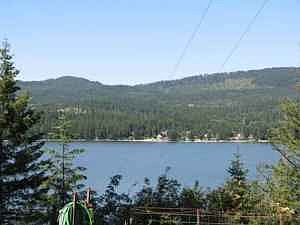 Total Privacy With Filtered Lake and Mountain Views! Wonderful 3 bedroom, 2.5 bath home with spacious open floor plan, 2,919 sq ft, tongue and groove vaulted ceilings, built-in brick fireplace, laundry room and central air. Handicap access throughout main floor of home. Open deck with outdoor seating and covered hot tub, perfect for year around entertainment. All located on 5 wooded acres, with nice garden area, fruit trees, sprinkler system, beautifully landscaped, with attached oversized 2-car garage, and large detached 4 bay shop with lots of storage room. Easy to Show! Owner will consider lease option.