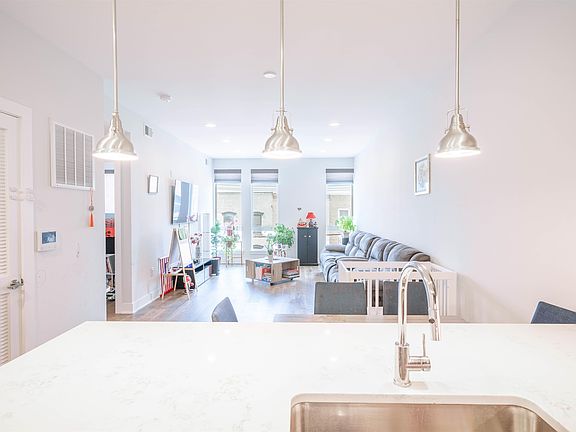 Welcome to Palisade Square, a mid-rise steel and concrete elevator building offering high-end luxury. This bright, spacious 1,115 sq. ft., 2-bedroom, 2-bathroom unit features over 9.5 ft ceilings, 7.5 ft windows, and wide plank oak hardwood flooring throughout. The kitchen showcases top-of-the-line KitchenAid appliances, high-end cabinets, under-cabinet lighting, and quartz countertops. The primary bedroom includes a large walk-in closet, while the second bedroom is bathed in natural light. Contemporary fixtures and Porcelanosa tiles adorn the primary bathroom, which also includes heated floors, double vanities, quartz countertops, Moen 90-degree bath fixtures, and glass shower doors. Additional features include an in-unit, full-size washer and dryer, and custom Hunter Douglas window treatments in the large living/dining room. Nestled in the vibrant and diverse neighborhood of The Heights in Jersey City, this area is known for its unique charm and eclectic atmosphere, offering a mix of historic architecture and modern amenities. Close to Riverview Fisk Park, local shops, restaurants, farmers markets, and cafes just steps away from your doorstep. The community is well-connected with easy access to public transportation, including buses and light rail, facilitating a seamless commute to downtown Jersey City and New York City.