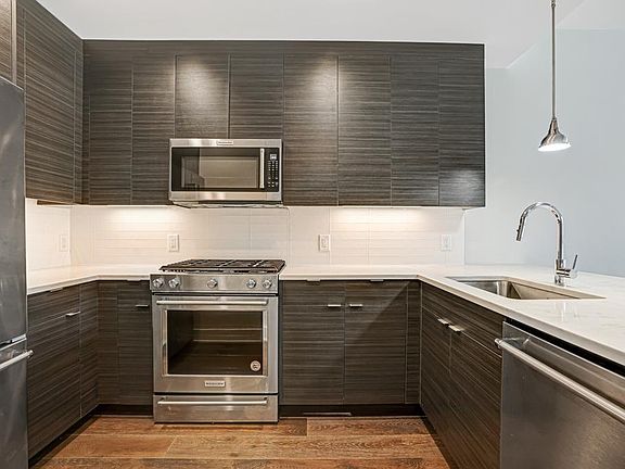 PANORAMIC NYC VIEWS. Designed with the true "urbanite" in mind and meticulous attention to detail, this brand new steel and concrete construction is located directly across from River View Park on a charming cobblestone street. Extra large 1 Br - 1 Full Bath, 742 Sq Ft. This mid-rise elevator building is in the Heart of The Artist District. Featuring 9.5 ceilings, 7.5 windows, wide plank Oak hardwood flooring throughout, Kitchen Aid SS appliances, Quartz countertops, high-end kitchen cabinets with under cabinet lighting. Bathrooms feature - Porcelanosa tiles, heated floors, double vanity with quartz countertops, Moen 90 Degree bath fixtures, Stand up shower with triple shower heads, glass shower doors. Washer/Dryer room in unit. Direct NYC bus transportation, walking distance to the Light Rail and CityBike. NO REALTOR FEE! owner is a License Realtor None Smoking Building.