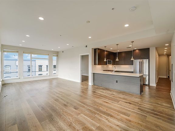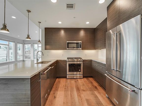 **NO BROKER FEE with 18 month lease** A NEW HEIGHT OF LUXURY LIVING. Experience luxury living in this exquisite two bedroom, two bath condo in the most prestigious neighborhood of JC Heights. This modern corner unit home is adorned in high-end finishes satisfying everyday needs with: stainless steel Kitchen Aid appliances, quartz countertops with under cabinet lighting, central heating and cooling, floor to ceiling windows that has partial views of downtown NYC, gleaming wide plank hardwood flooring throughout 1334sqft, spa-like master bathroom with large stand up glass shower, double vanity sinks and heated floors, spacious master bedroom with walk-in closet, ample closets for storage, in unit washer/dryer and dedicated garage parking with storage and bike rack included. All this at the newly built Palisade Square that steps right outside to the renovated Riverview Park, four blocks to Congress/9th Street Light Rail, electric car charging station, shops, trendy restaurants, farmer's market and 10min drive to Whole Foods and Trader Joes. Available ASAP. No pets.