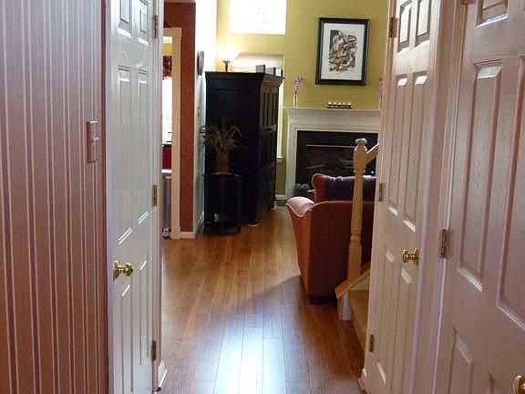 Pack your bags and move right in! Better than new! This house has EVERYTHING. Open floor plan; neutral d~cor; updated; upgraded; and upscale!! The main level has beautiful engineered hardwood floors; a fabulous great room with a soaring 2 story ceiling, Palladium windows with sunburst toppers, and a cozy gas fireplace. The spectacular kitchen boasts stainless appliances, granite countertops, ceramic tile backsplash and floor, pantry, microwave/convection oven, recessed lighting and sliders to the spacious deck overlooking the bucolic, wooded backyard.....so peaceful! Upstairs you will find 2 sizable bedrooms, full laundry room, hall bath, linen closet, and attic access. The master bedroom has a stylish, white-washed, vaulted ceiling with ceiling fan, bumped out bay window, custom walk in closet; fabulous updated, full bath with double sinks and vaulted ceiling. All of this and a 1 car garage, newer roof, newer windows, new HVAC! Let's not forget about the outstanding the LOCATION....No thru traffic on this dead end street. Wooded backyard. Close to the Winners Circle pool, Spring Valley Park (walking trails, picnic pavilion, sand volley ball court, baseball/soccer fields), plenty of shopping, restaurants, recreation, major roadways, public transportation .....this house truly has it all. A 'Perfect 10'.