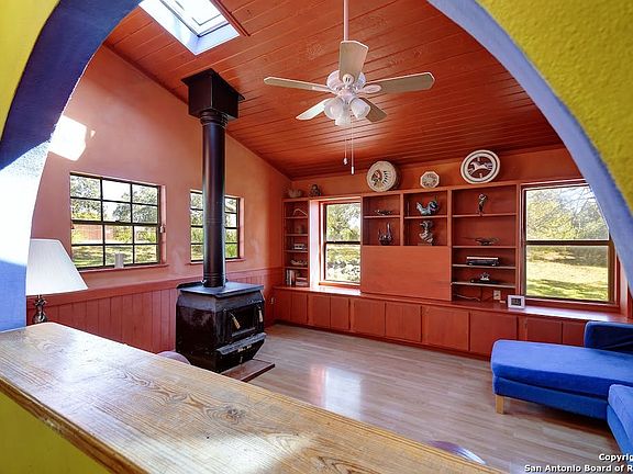 Wonderful Hill Country Cottage on 6.85 acres. This artist inspired home features a 2/2 main house with a finished attic that can be used as a third bedroom or office. The home features a wood burning stove and built in bookshelves in the living room. The primary bathroom has a clawfoot bathtub with large windows that look out over a beautiful Hill Country view. There is a small deck at the rear of the home that is perfect for having your morning coffee. Tile floors and artistic touches throughout the home. There is also a detached cabin that is currently used as a rental. This artist property also has a separate workshop/studio with lots of space to create. Mature Live Oaks and Native Landscaping. The property gently slopes down to a fenced pasture. Abundant Wildlife. Easy commute into Wimberley, Austin and San Antonio. Experience Hill Country living at its finest in this quiet and serene setting.