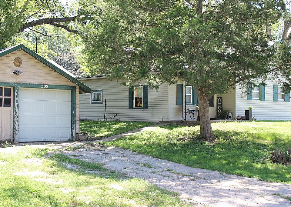 This large corner lot in small town Avoca provides lots of shaded yard space and the convenience of living on one level - 2 bedrooms one with walk-in closet, 1 bath, and 1 detached single car/shop garage with concrete floor. Home has small cellar basement and new roof. All appliances will stay to include washer and dryer. Great starter home or rental, can include all furniture if wanted. Home is being sold as-is. Make offer today! (Inside photos of garage and house to come)