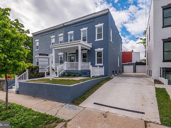 Gorgeous high-end renovation with yard, driveway and enclosed garage, steps to Petworth metro! This 5 bed/3.5 bath end-unit rowhome has been gutted and expanded and finished to meticulous detail. 20' wide and 42' deep with three walls of windows, this house lives like a detached home. Enjoy the quiet, tree-lined street from the quintessential front porch. From there, enter into a bright, open living space flooded by light with 9' ceilings and warm 5" plank maple wood floors. The chef's kitchen features ample storage and is open to a spacious back deck overlooking the private, fenced yard. The substantial island seats plenty for entertaining and sits next to space for a large dining room. A powder room completes the main level. Upstairs you'll find an expanded primary suite with 9' ceilings and a spa en suite, featuring a dual vanity and double shower heads. Two more bedrooms, a full bath and laundry complete the upstairs level. Downstairs you'll find a two-bed/one-bath accessory dwelling with front and rear egress and wet bar. All of this just two blocks to metro, grocery, parks and restaurants. This one checks all the boxes and is not to be missed!