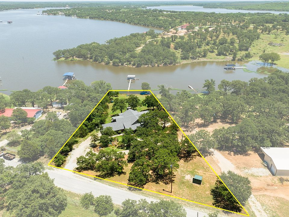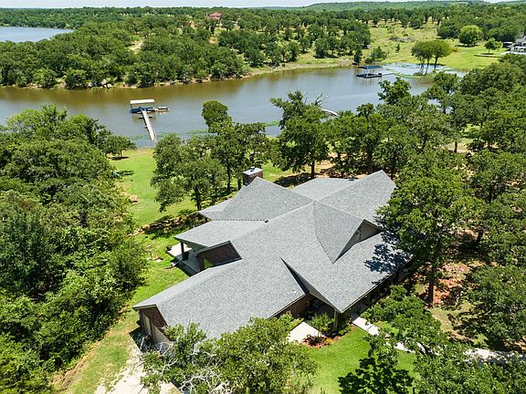 Custom built on 1.5 Acres in a private cove, offering the perfect blend of rustic charm and upscale comfort featuring 3beds, 2 baths, 2 car garage with 3007 sf. with a spacious loft overlooking the main living area. The house is designed to showcase break taking lake views through expansive windows and doors. The tall stone fireplace, framed by rick wood accent walls, creates a warmth and inviting focal point. Fabulous open kitchen with granite countertops, over sized island for bar eating, off set formal dining + laundry room with a storm closet pantry. Outdoors enjoy covered front and back porches with a sandy lake, 100' entry to the dock, setting on a private cove. Make it your retirement home on a great lake not to small nor not to large.