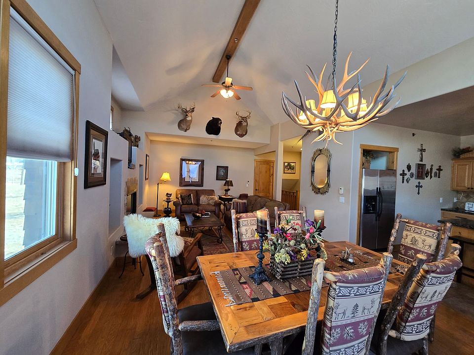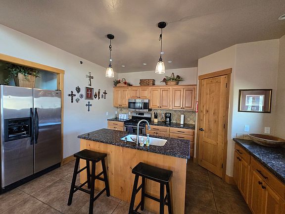 RIVER EAGLE is a LUXURY TOWN-HOME located on the beautiful, winding San Juan River in Downtown Pagosa Springs. 3 BEDROOMS 3 BATHS: RIVER EAGLE can accommodate (6) very comfortably with one (1) King bed, one (1) Queen bed and Twin beds. The very large, privately located Master Bedroom suite (second level) has a private balcony with spectacular views. The Master Bath features a huge, glass enclosed shower, jetted tub, his/hers sinks, granite counter tops and a completely separate toilet room. There is another full bath downstairs with the other two bedrooms and a half bath on the main upper level. KITCHEN: Cook your heart out in the fully equipped "Gourmet" kitchen complete with gas range, microwave, granite counter tops, walk-in pantry, separate eating and serving bars. GREAT ROOM/DINING AREA: The kitchen opens to the large and lovely GREAT ROOM and DINING AREA featuring beautiful hardwood floors, designer furnishings, soaring vaulted ceilings, lots of natural light, gas log fireplace, stone hearth, fireplace niches and a collection of fine local art. RIVER EAGLE also offers: Heated garage. Large storage room off garage (for safely storing sports equipment). Full utility room with washer/dryer, ironing board and iron. All linens furnished (including sheets, towels, pillows & extra blankets). All small kitchen/appliances, pots, pans, dishes (service for 8), glasses, mugs, cooking and dining utensils, etc. are provided. RIVER EAGLE is a scenic, easy 10-minute walk to historic downtown Pagosa Springs, where you'll delight in shopping for antiques, art, clothing, sports equipment, gifts and so much more! Downtown Pagosa also offers a variety of dining choices, plus local pubs, Internet-cafe, drug store, movie theater and churches. Less than 30 minute drive to Wolf Creek Ski Area and just over an hour drive to Durango Mountain Resort (Purgatory). Walk (15 minutes) or drive (3 minutes) just minutes to Pagosa Hot Springs. Soothe your body, or simply RELAX, in the healing, hot mineral waters of world-famous Pagosa Hot Springs, or treat yourself to a luxurious spa service. .Pack 'N Play on site for your convenience. $2850/mth Available from 11/01/24- 9/15/2025 ALL UTILITIES INCLUDED IN RENT. ADDITIONAL CHARGES WILL BE BILLED FOR ANY OVERAGES. com to set up an appointment for viewing or enter a Guest Card.