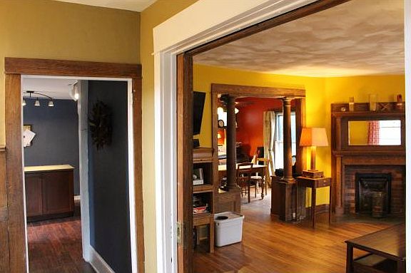 This stately, turn of the century stucco craftsman offers plenty of space, charm, and character! Home of the original Titus Flats tract builder, Andrew Cameron Hyers.4 bedrooms, 1.5 baths, original chestnut woodwork throughout, built-in cabinets and double mantle fireplace. First floor office, mudroom, and eat-in kitchen. Flat, fenced-in yard perfect for gardens, pets, and landscapers at heart! Workshop in basement and walk-up attic offers additional storage and recreational space. Off street parking for 3+ cars. Fall Creek Elementary school. Walk to everything - Downtown living at its best!