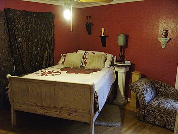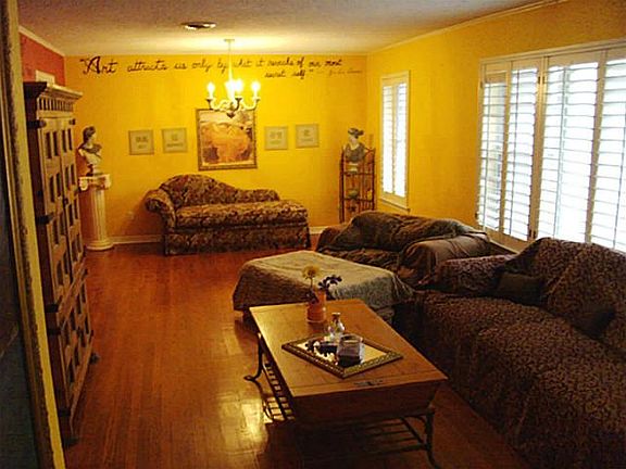 PRICED TO SELL! ARTSY HOME, BUT BRING YOUR DECORATING IDEAS! This could be a tremendous home to redo, as it seems to have good bones, is in a desirable area, and has spacious rooms. Big living room has hardwood floors. Kitchen has tile counters. Master bedroom has a large walk-in closet. Big fenced yard. Two living areas. Glass door knobs and period tile. Covered porch. Not all is perfect with this house; seller wants to sell AS-IS.