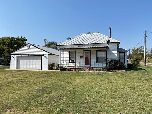 This a nice clean neat home with 2 bedrooms and 1 bath. Open Living kitchen dining area, inside utility with an extra room for an office or playroom, right out the back door is another room that could be an office, craft room, sewing room etc. There is a nice size storm cellar, corner lot 3 lots total, two car detached garage. Nice quiet street.
