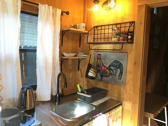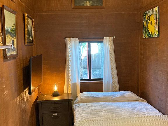 Cabin has a shower with a small water heater. Free street parking available park at your own risk. The rent includes utilities, Netflix, and wifi. Background check required for application.