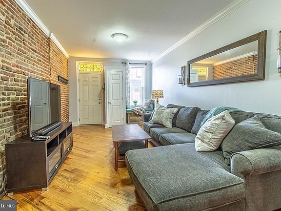 REDUCED! In the heart of Canton just steps from Patterson Park, this 2 BR/1.5 Bath Brick Rowhouse is nestled on a quiet historic street. Previously renovated, this sun-filled home features an open-concept floor plan with beautiful oak floors and stairs, exposed brick walls, stained-glass transom, six-paneled doors, crown molding, skylight and a beautiful private deck and patio. The kitchen features granite countertops, stainless steel appliances, maple cabinets and ceramic tile floor and backsplash. The upper level features an oak floor hallway with skylight, washer/dryer and built-ins, a master bedroom with vaulted ceilings, skylight, a ceiling fan and a loft/storage space, master bathroom with a jetted tub and ceramic tile floor and a second bedroom with access to a private, fenced, sunning deck. Enjoy grilling in the back patio with privacy fence and stone-wall flower beds.