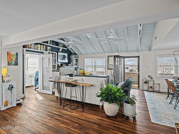 Beautifully remodeled home with stunning sunset views of Oriental Harbor. Magazine worthy custom upgrades including reclaimed wood flooring, accented with bead board interior walls and masonry gas log fireplace, exposed beam ceilings in the living area- just to name a few! 2 bedroom, 1.5 bath home located in the heart of the Village of Oriental - the sailing capitol of the Carolinas'. Residence is located within a MU1 zone, offering commercial or rental potential. Overlooks the harbor and beyond to the Neuse River and ICW. Property is elevated with all living areas/bedrooms on a single level with a wheelchair lift in-place. Open concept living with elevated, vaulted ceilings, expansive waterviews from every room. Home office/FLEX room with detached shed/potential workshop with bathroom, utility sink and storage. The lower level gives way to one-bay garage and extensive space for a workshop/storage. Stainless Steel appliance package, gas cooktop with griddle and granite countertops.